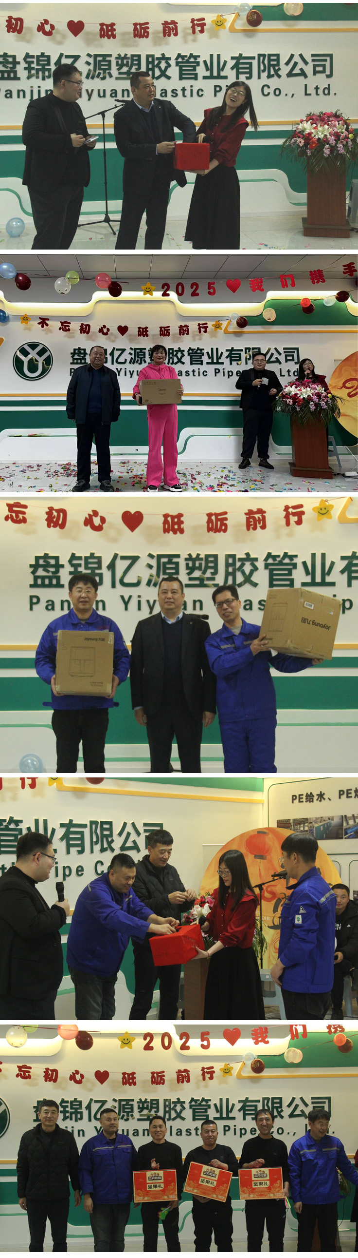 年會伊始,公司領(lǐng)導(dǎo)上臺發(fā)表了熱情洋溢的致辭。回顧2024年,億源管業(yè)在激烈的市場競爭中穩(wěn)步前行,不斷拓展業(yè)務(wù)版圖,提升產(chǎn)品質(zhì)量與服務(wù)水平。這些成績的背后,是每一位員工的辛勤付出與無私奉獻(xiàn)。領(lǐng)導(dǎo)對全體員工的努力表示了衷心感謝,并對未來的發(fā)展規(guī)劃進(jìn)行了展望,讓大家對新的一年充滿信心與期待。