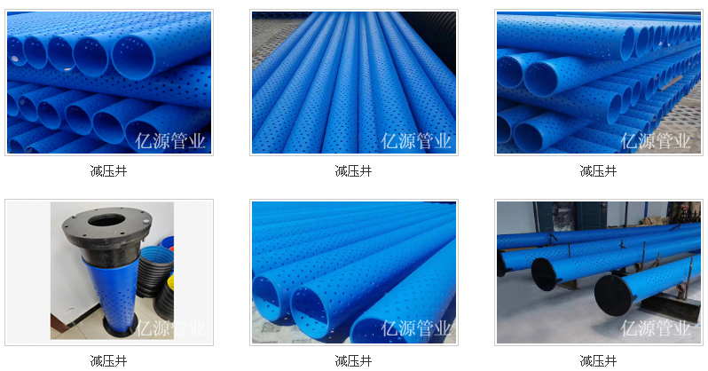 該產品由外至內依次是HDPE塑料管材(梅花孔)、無紡過濾棉布、盲管、PVC管,底端為PE板及三腳架焊接連接,頂端為PE法蘭根、同心圓、螺栓構成頂端裝置對焊連接管材;
